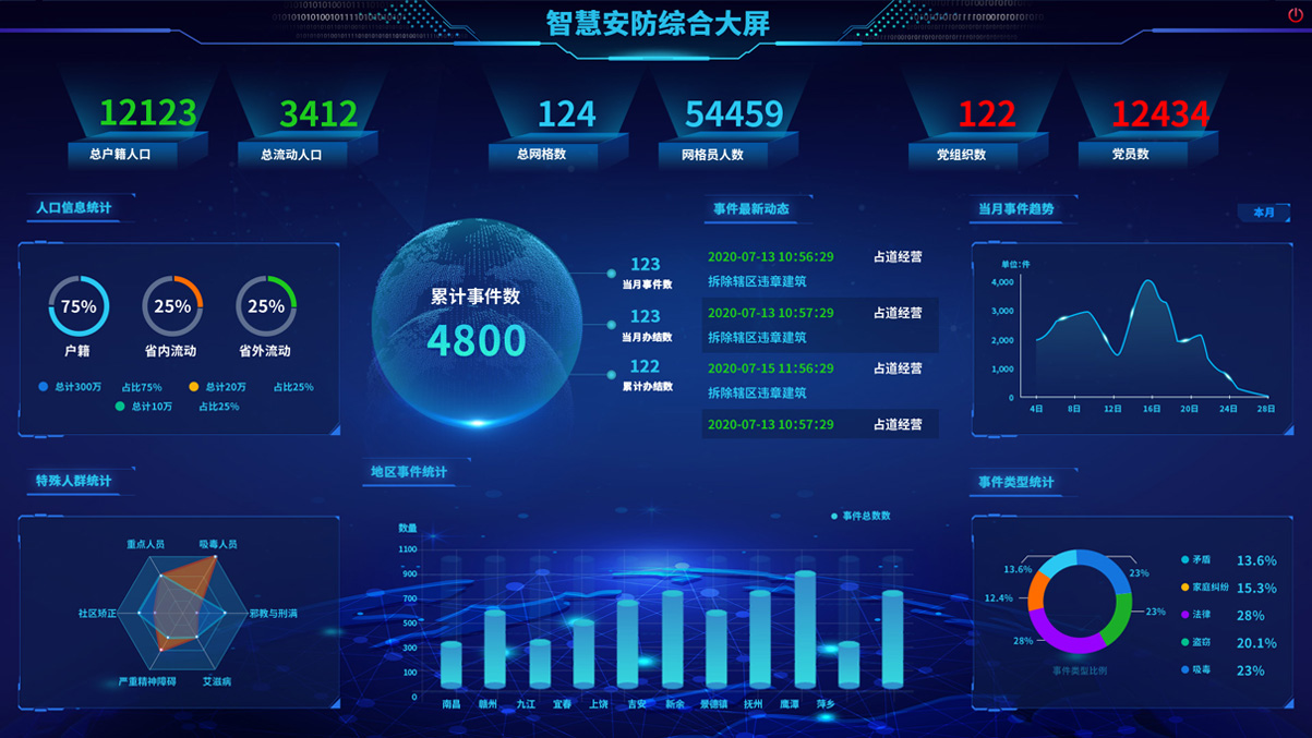 全方位立體式還原院區(qū)實(shí)貌,分圖層對(duì)院區(qū)的區(qū)域、建筑、單位、安防設(shè)備、管理設(shè)備、警情等進(jìn)行查看、監(jiān)控和跟蹤;通過院區(qū)各類安防管理設(shè)備實(shí)時(shí)獲取各重點(diǎn)監(jiān)控區(qū)域的監(jiān)控?cái)?shù)據(jù),對(duì)各種突發(fā)事件進(jìn)行報(bào)警。通過人臉識(shí)別、車牌識(shí)別、行為識(shí)別、武器管理、營(yíng)區(qū)設(shè)備等各類傳感器,對(duì)人、車、物及其行為的全面感知,保障營(yíng)區(qū)安全。 -