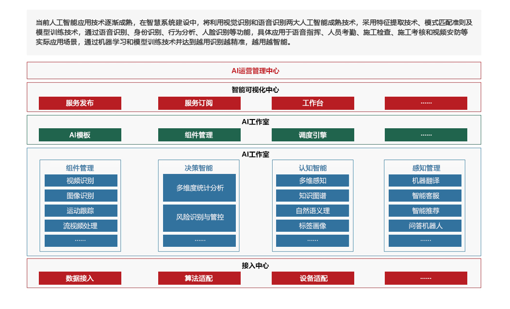 智慧軍營(yíng)物聯(lián)網(wǎng)系統(tǒng),通過云計(jì)算、大數(shù)據(jù)和人工智能實(shí)現(xiàn)對(duì)軟硬件結(jié)合管理,使傳統(tǒng)軟件快速轉(zhuǎn)化為智能硬件,對(duì)營(yíng)區(qū)內(nèi)進(jìn)行智能提升,實(shí)現(xiàn)一站式托管—高效性、低成本。提升營(yíng)區(qū)智能化,提高營(yíng)區(qū)物聯(lián)網(wǎng)落地能力,數(shù)字整合為營(yíng)區(qū)智能化提供決策。具有高響應(yīng)、高擴(kuò)展性、提供輔助決策分析、硬件統(tǒng)一管理、多協(xié)議適配的特色。